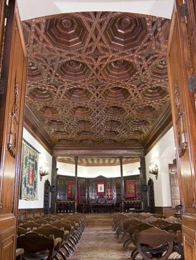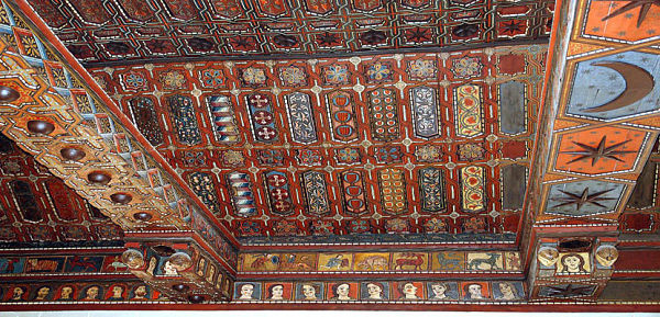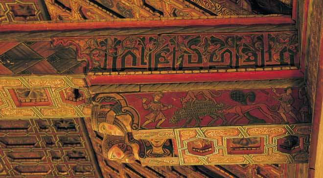 Y de todos sus elementos, tal vez el artesonado es el de más delicada belleza. Requiere una técnica excepcional de carpintería y policromía, normalmente acabada con pintura al temple o pan de oro.