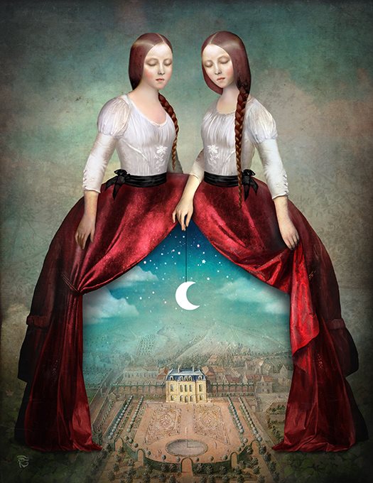 Combina pintura, ilustración, fotografía y edicion digital para crear un Universo onírico, surrealista, repleto de simbología. Un Universo propio que quiere traspasar al espectador . Una pista sobre su simbolismo: Schloe trabaja sobre lienzos desgastados, como queriendo eludir el tiempo.