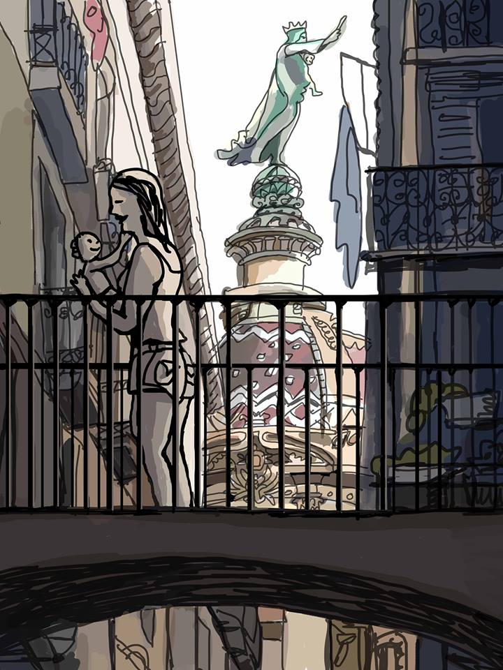 Así que ha vuelto a su faceta inicial: la de dibujante. Y como tal realiza su segunda exposición en Barcelona, en la Galería Eude.