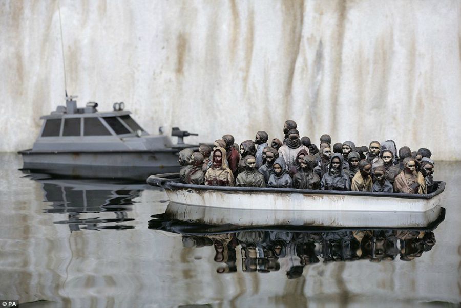Está en pleno paseo marítimo  de la ciudad balneario de Weston-super-Mare, una localidad en decadencia… y a un vecino que parecía conocerlo se le escapó: «Banksy es un chico de aquí y sabe que necesitamos un revulsivo».