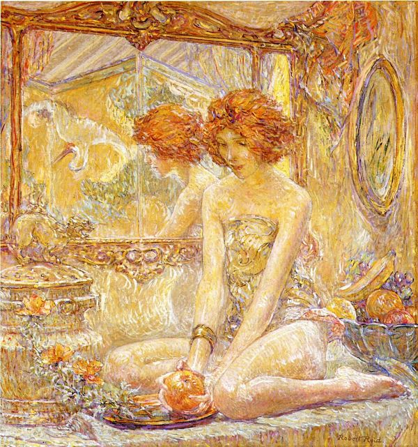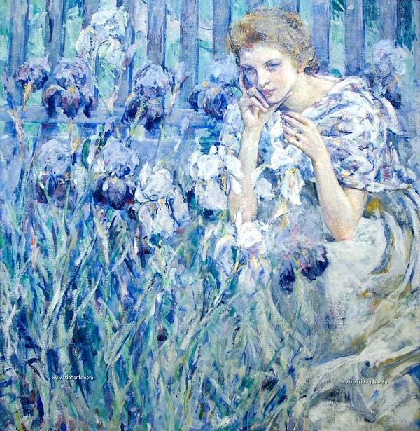 Apenas trabajaba en estudio, en este sentido «El Espejo» de 1910 es una excepción. Su tema favorito siempre fue aunar la belleza de la mujer con la de las flores y los jardines.
